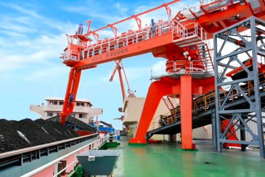 The fully enclosed grab of Chizhou Power Plant receives and unloads the coal from the ship.